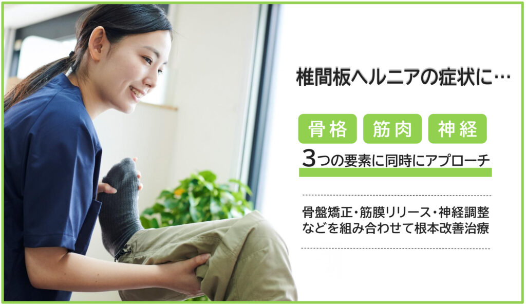 整骨院では、椎間板ヘルニアの症状に対し、身体全体のバランスを考慮した施術を行います。